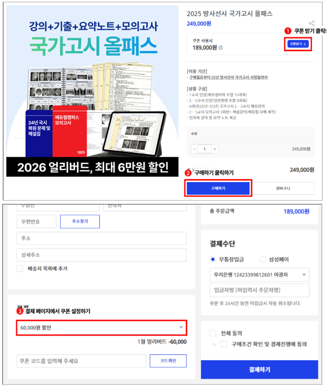 '국가고시 올패스' 상품에 한하여 얼리버드 쿠폰이 적용되며, 올패스 외 상품에는 적용이 불가합니다.