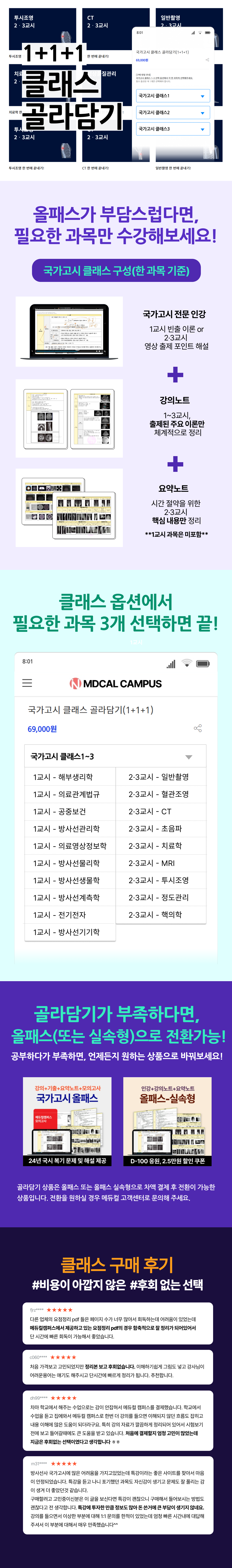- 국가고시 올패스에 포함된 전 강의(클래스) 중 3개 과목 선택 가능